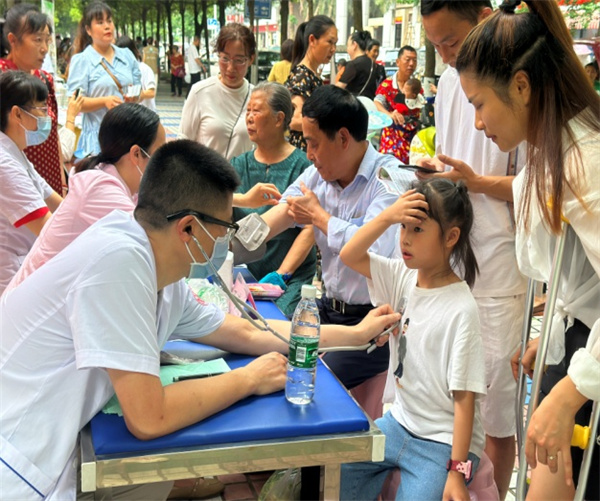 活动现场,医护人员耐心地对前来问诊的患儿进行检查,特别是对儿童常见病的治疗和疑难复杂疾病的患儿给予初步筛查、诊断,根据具体病情给予合理化的就诊建议及用药指导,引导科学就医。并向广大婴幼儿家庭宣传科学的育儿知识,不仅让广大群众了解托育服务理念,也学到了科学的婴幼儿照护方式,受到广大群众的一致好评。