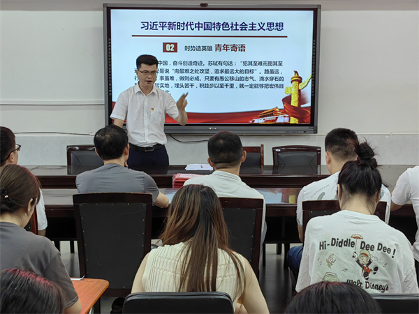 铭初心、强使命。支部书记徐洪波同志以“强国建设,民族复兴”为主题讲党课。他从“时代好青年,自立自强”和“时势造英雄,青年寄语”等多个维度进行论述,给全体党员教师带来了一场政治洗礼,一次党性教育。