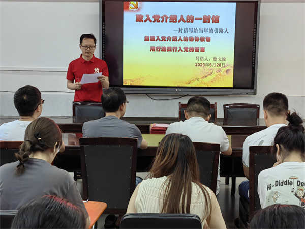 写家书,表决心。新党员徐文波同志给入党介绍人写了一封书信,感谢入党介绍人的悉心教导,“面对面”向他们汇报自己的工作,介绍自己的成长,审视差距不足,并承诺做一名“经得起考验,守得住初心,担得起使命”的优秀党员。
