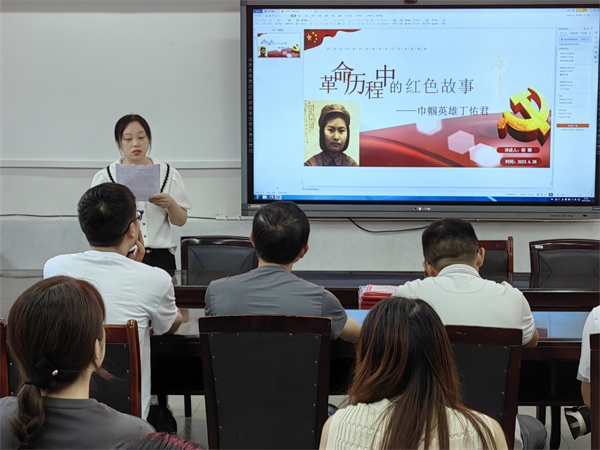 讲故事,促成长。党员教师胡娜以乐山“巾帼英雄丁佑君”为主题,讲述了丁佑君为革命献身的故事。生动的讲解、真实的情感,让党员教师缅怀革命先烈丰功伟绩的同时,进一步筑牢红色信仰,凝聚复兴之志。