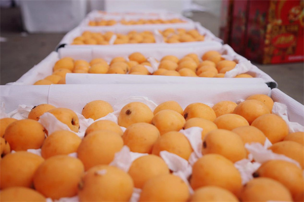 在费治宣家的庭院里,外地收购商罗来辉正组织工人按照重量对采摘的鲜果进行分选、包装。“我是从攀枝花过来收购枇杷的,因为顺河枇杷上市晚、口感好,深受市场喜爱,现在我们主要销往北上广,目前的收购价在6~9元之间。”罗来辉说道。