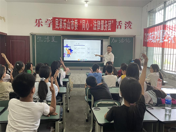 此次活动为当地93名儿童送去了新学期的书包、水杯、笔袋等物品,同时民革乐山市委“同心•法律服务团”副团长王炼、“同心•志愿者服务团”成员欧阳熙语分别为孩子们带来了预防未成年人犯罪与心理健康趣味讲座,在教会大家用法律的武器保护自己的同时,关注心理健康、快乐成长,旨在让孩子们共享优质教育,助力乡村振兴。
