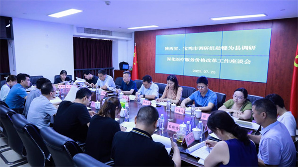 四川新闻网消息 7月25日下午,陕西省医保局医药价格和招标采购处一级调研员鲍光勤、二级调研员谭晓梅,宝鸡市医保局副局长马天利等一行14人到犍为县人民医院调研指导医疗服务价格改革试点工作,县医疗保障局局长王正平、事务中心主任袁成贵等相关人员陪同。