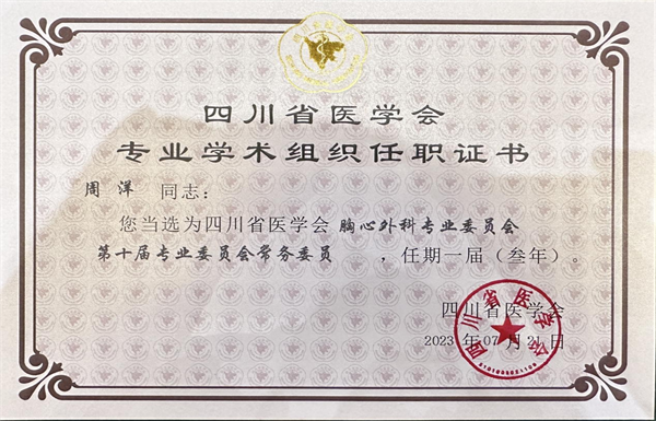四川新闻网消息 2023年7月21日,四川省医学会胸心外科学专业委员会换届改选会议在成都召开。乐山市人民医院心脏中心·心脏大血管外科周洋博士当选四川省医学会胸心外科专业委员会第十届专业委员会常务委员。