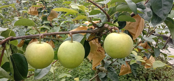 走进峨边县宜坪乡庙岗村翠冠梨基地,棵棵枝繁叶茂的梨树上,梨子挂满枝头,在成排的梨树下行走,驱散了几分夏日的炎热。
