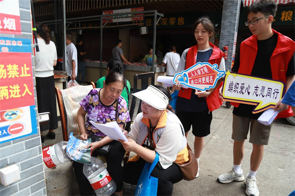 “您好!您知道我市正开展文明城市创建活动吗?”“您所在的社区是否经常组织新时代文明实践活动?”在滨河路社区,社区干部、网格员、志愿者们共同组成入户组,全覆盖“入小区、入商铺、入农贸市场、入公园”进行问卷调查和宣传,开展“敲门行动”,倾听群众心声,收集创建文明城市意见建议,引导群众一同践行文明行为规范,争做文明风尚的传播者。