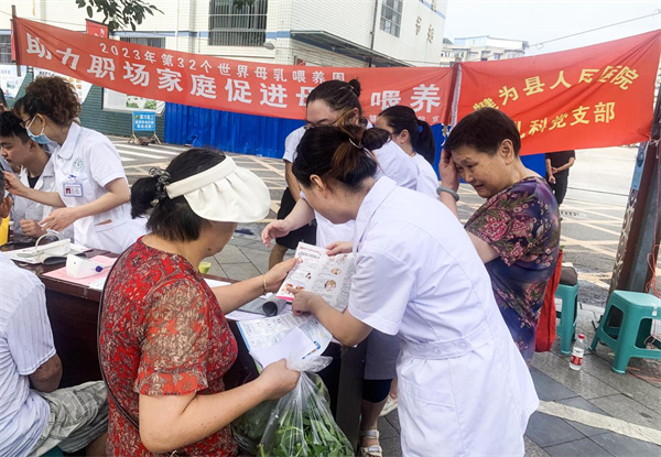 四川新闻网消息 8月1日-2日,犍为县人民医院妇儿科党支部及妇产科、儿科医护人员围绕“助力职场家庭、促进母乳喂养”主题开展系列活动。医护人员在门诊二楼产科大厅悬挂横幅、发放宣传单、道具示范教学、开展母乳喂养知识讲座等,促进社会和公众正确认识母乳喂养的重要性。
