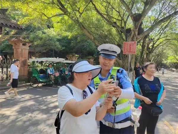 四川新闻网消息 连日来,乐山全市公安交警深入落实乐山公安旅游警务“八优举措”,持续加强对全市旅游景区、网红打卡点、美食街等区域的道路交通疏导、秩序管控、安全管理、隐患排除和“情系游客”服务,全力确保广大来乐游客在乐山游得安心、玩得开心、行得畅心。