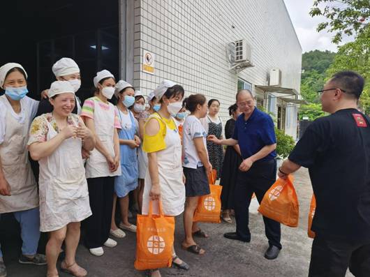 谷平一行来到玉皇纺织厂,为坚守工作岗位的一线职工送去了装有水杯、小风扇、浴巾的清凉礼包,感谢他们高温下的坚守,同时叮嘱职工要增强自我保护意识,在高温作业时一定要注意防暑降温。