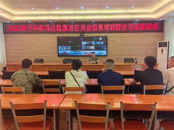 四川新闻网消息 为深入贯彻落实廉洁征兵纪律规定,加强廉洁征兵监督员队伍建设,2023年8月11日,马边彝族自治县人武部举行廉洁征兵监督员教育培训大会暨聘书集中发放仪式。县人武部政委童伟主持。