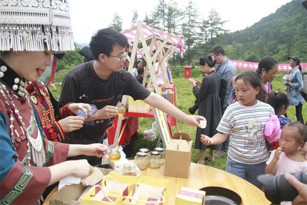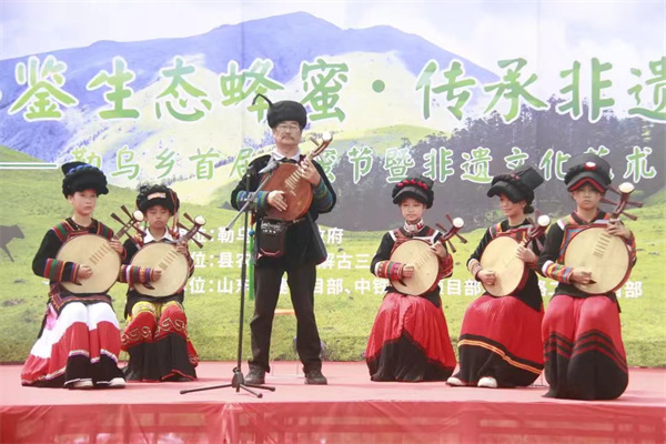 四川新闻网消息 山花烂漫,野蜂飞舞,歌声嘹亮,裙裾飞扬......8月11日,峨边彝族自治县勒乌乡首届采蜜节暨非遗文化艺术节在勒乌乡马井村612林场辖区火热进行。品彝家蜜、赏民族歌舞、听彝家说唱.....远道而来的游客与乡民们齐聚山野,共享彝家甜蜜好光景。