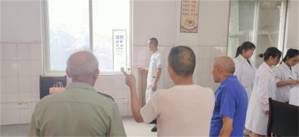 这次义诊为泉水敬老院老人和前来就诊的村民开展常见疾病筛查,血压、血糖测量、视力检查。