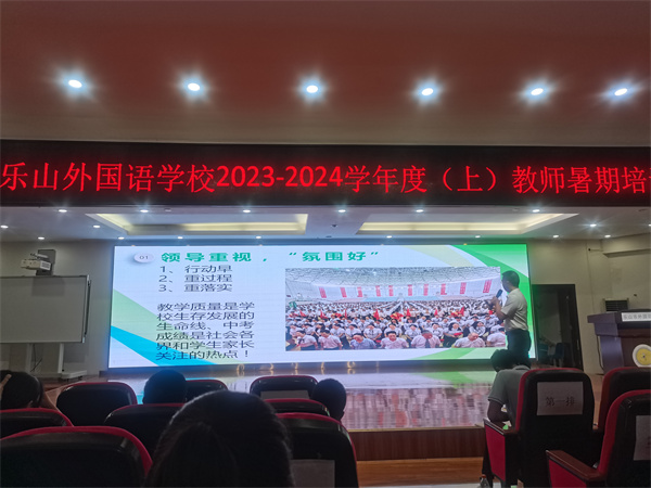 四川新闻网消息 2023年8月20日,乐山外国语学校在阶梯教室举办了第二届中考论坛。本次论坛研讨活动旨在为乐外教师提供一个交流、学习和成长的平台,从而进一步把握教育改革的主旋律,提高教师自身的教育教学水平。研讨活动由乐山外国语学校教科部部长黄海清主持,乐山外国语学校校长田华伦、副校长罗九成、徐乐乐以及初中部全体教师参加了本次学习分享活动。