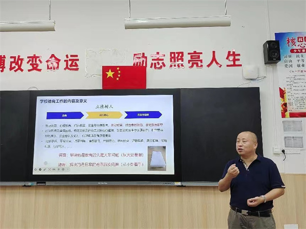 17日上午,刘良川副校长作“对新高一年级德育工作的一些思考”主题发言,提出以“学生舒心” 为中心,通过“教师顺心”和“家长安心”的支撑,构建起“学生、家长、教师”三位一体的德育共同体。他强调,德育工作不仅要解决教育的大是大非问题,同时也要解决日常的鸡毛蒜皮问题。因此,德育工作要从大处着眼、从小处着手,全面落实立德树人任务,教育学生成为有思想、有品德、重规则、守规则的人,努力构建德智体美劳全面发展的教育培养体系。他要求,高2026届全体教师务必充分发挥课堂教学的主渠道作用,将中小学德育内容细化落实到各学科课程的教学目标之中,融入渗透到教育教学全过程。