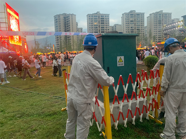 自接到保电任务后,国网乐山供电公司高度重视,第一时间编制保电预案,成立保电领导小组,明确各专业职责分工。本次活动涉及2条输电线路、2座变电站、2条配电线路的保电工作。前期,该公司组织人员对线路及设备开展“地毯式”巡视检查和红外测温工作,排除安全用电隐患;活动期间调配1台400千瓦发电车驻守主会场,各保电点位保证双电源供电。各保电点位专人值守,共产党员服务队、“壹嘉壹”青年志愿者活跃在各活动现场开展安全用电检查宣传和优质服务。
