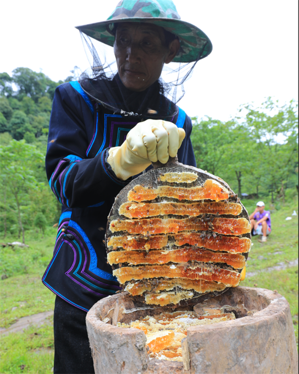 来宾们还一起体验了取蜂蜜、尝蜂蜜。海拔1700多米的万坪村产出的“深山花蜜”,色泽清亮,在阳光的照射下,仿佛缓缓流淌的琥珀。入口香味浓郁但没有黏腻感,馥郁中带着些许清爽的甘甜味,返味略有一丝苦涩,冲淡了蜂蜜原生甜味可能带来的齁嗓感,风味独特,食药价值高。