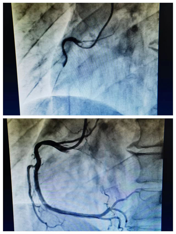 19日上午10点左右,患者李华(化名)无明显诱因突发胸痛,疼痛放射至左肩背部,约1小时后情况加重,大汗淋漓,面色苍白,有呕吐症状,在邻居的帮助下拨打120后,沙湾区人民医院出车,并于10点40分进行首次医疗接触,10点47分完善首份心电图,10点48分初步诊断为“急性下壁ST段抬高型心肌梗死”。因考虑心梗,需尽快开通血管,经与患者家属沟通同意后,于11点27分到达乐山市人民医院,此时,乐山市人民医院胸痛中心急诊介入的医护团队已经准备就绪,患者直达导管室,经过副主任医师周薇、主治医师王玫苏的迅速操作,11点50分,导丝顺利通过患者“罪犯血管”,并置入1枚支架至右冠中段。D2W用时仅23分钟。术后患者迅速转危为安,胸痛症状明显改善,康复良好。