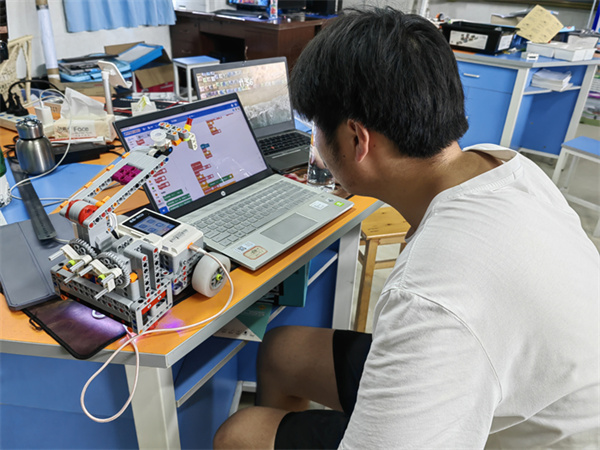 “我们的机器人硬件出现故障,还现场刷机重置了机器人,好在辅导老师赛前教过,否则只有退赛留下遗憾了,而且比赛时还只排队测试了2次就开始正式比赛,特别考验综合能力,简直太刺激了!”同学们赛后激动地说道。
