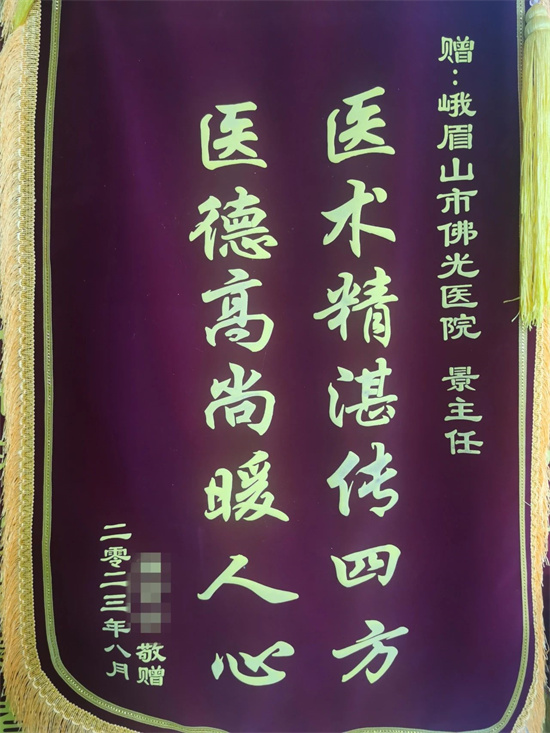 四川新闻网消息 近日,一患者家属将一面锦旗送到峨眉山佛光医院普外科、胸外科医护人员手中,表达感谢之情。