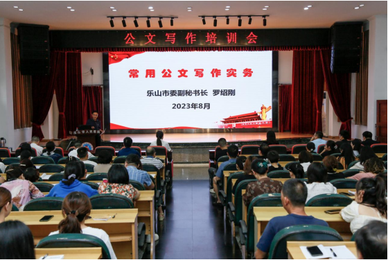 四川新闻网消息 为进一步推进医院高质量发展,提高职能部门公文写作水平,8月30日,乐山市人民医院召开公文写作培训会,邀请市委副秘书长罗绍刚开展《常用公文写作实务》专题讲座。乐山市人民医院党委书记陈佳及在家党政领导班子成员,行政后勤科室职工160余人参加培训。党委副书记金锋主持会议。