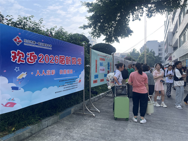四川新闻网消息 9月2日,乐山一职中开学报到首日,1400余名新生在家长的陪伴下,踏入高中校园,体会着新校园带来的新鲜感。