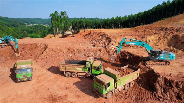 “项目场平工程总的挖方是57万方左右,回填约19万方。现在回填已经全部完成,开挖已经完成了70%。通过各方努力,施工进展很顺利,预计本月底场平工程将全面完工。”项目现场负责人高建清介绍说。