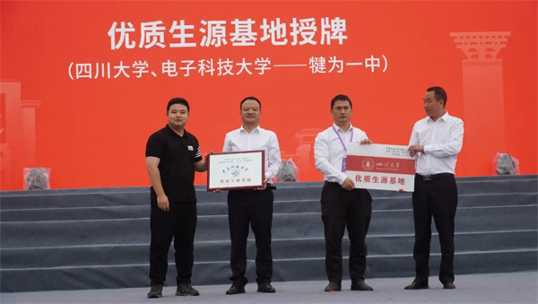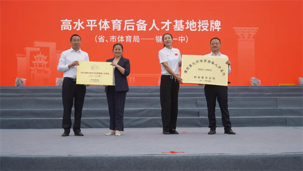 与会领导还为犍为一中高质量发展教育顾问颁发聘书;四川省体育局、乐山市体育局为犍为一中“国家高水平体育后备人才基地”和“四川省重点高水平体育后备人才基地”授牌。大会还举行了犍为一中校史馆揭牌仪式。