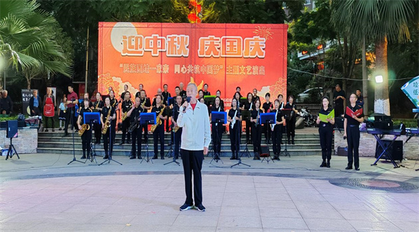 晚会,在新启点乐团带来的《歌唱祖国》 《我爱你中国》器乐合奏中开幕。先后相继表演了大合唱《彝唱山叹》 《敖包相会》、舞蹈《再唱山歌给党听》、彝族乐器联奏《阿莫阿达古》 《我行我可以》、男女声二重唱《共筑中国梦》、电吹管合奏《花好月圆》 《芦花》、男声独唱《等待》、萨克斯合奏《云中月圆》 《今夜无眠》、舞蹈《你的生命如此美丽》、女声小合唱《我的祖国》、女声独唱《红旗飘飘》等21个精彩纷呈的节目。其中,《再唱山歌给党听》表达了对中国共产党的热爱之情;《歌唱祖国》 《我爱你中国》 《我的祖国》 《红旗飘飘》表达了热爱伟大祖国的情怀;《彝唱山叹》赞颂了家乡之美;《阿莫阿达古》表达了对父母的思念之情;《敖包相会》 《花好月圆》 《云中月圆》 《今夜无眠》表达了花好月圆、共度中秋佳节的美好景象。特别是由彝族亲姐弟领唱的大合唱《彝唱山叹》和本土彝族男高音歌手演唱的《等待》及女声独唱《红旗飘飘》,气势恢宏,震撼人心。