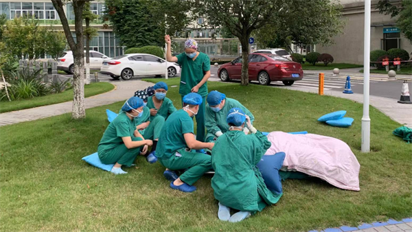 待全部人员撤离到安全地带,手术室主任邓波与救援组继续对病人进行下一步的处理,护士长刘艳对人员、必备物资进行清点,确认无误后将本次撤离情况向权主席汇报。