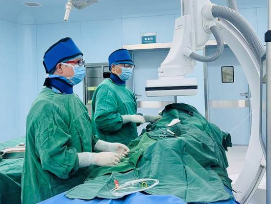 经过充分的术前准备后,在局部麻醉下行DSA下胆道支架置入+经皮肝穿刺胆道引流术(PTCD),手术历时1个半小时,顺利结束。