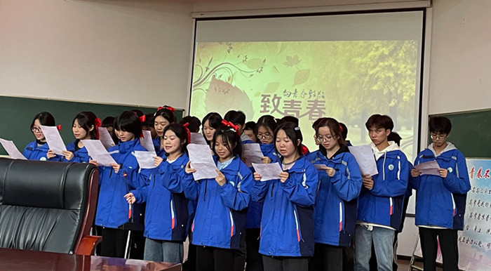 青春是充满活力,立志追梦的光辉岁月。正如诗朗诵活动《致青春》中所赞道的,青春是一个充满希望,拼搏追梦,追逐自由的年华,每一个人都应带着活力和激情,无怨无悔地去放飞梦想。诗朗诵活动让大会洋溢着青春的气息。