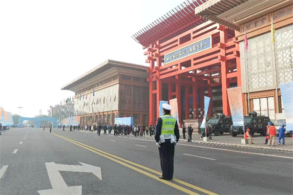 全力疏导管控。安保期间,全市公安交警严格按照“核心管制、中端管控、远端分流”的交通组织要求,全面加强警力部署,最大限度将警力和装备投放路面,全力强化核心区域周边道路的安全值守、劝导引导,中端区域的疏导管控和远端道路的引导绕行。