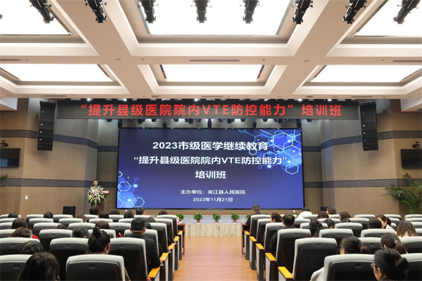 四川新闻网消息 为进一步提升县级医疗机构院内VTE防控能力及相关性疾病诊治与护理水平,降低院内VTE及相关性疾病的发病率、死亡率,了解国内最新进展。11月21日,由夹江县人民医院主办的市级医学继续教育项目《“提升县级医院院内VTE防控能力”培训班》(项目编号:乐2023-01-92)在十七楼学术厅成功举办。来自各医疗机构约200名医务工作者齐聚夹江县人民医院,共享这场精彩纷呈的学术活动。