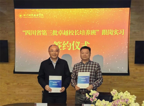 四川新闻网消息 秋风爽颊催人醒,旌旗猎猎意气发。近日,乐山一职中校长何晓明同志作为四川省第三批新时代卓越校长培训班学员前往导师王世伦所在单位——四川城市职业学院开展“四川省第三批卓越校长培养班”跟岗交流活动并举行签约仪式。
