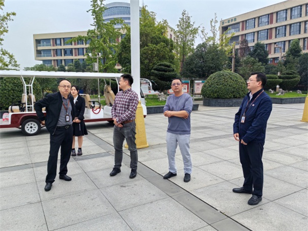 四川省城市职业学院副校长尚绪明热情地介绍了该校的基本概况和校园文化建设,带领乐山一职中校长何晓明,教务科科长龙刚,教务科干事王在国等一行人参观了学校教学楼、课堂录播室、实训中心、学生宿舍等区域,让大家对四川城市职业学院有了初步的了解。