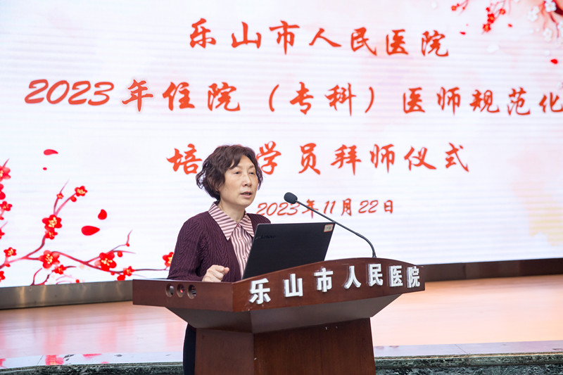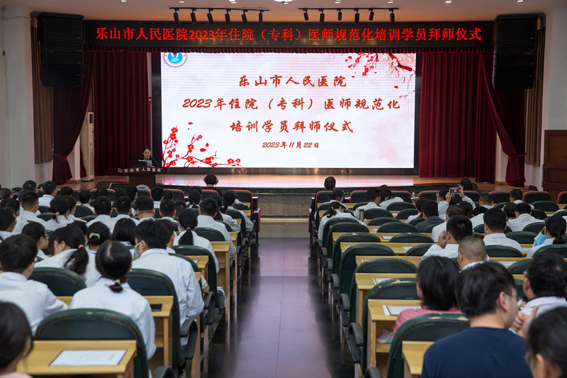 四川新闻网消息 为弘扬尊师重教的文化,搭建师生沟通交流的平台。近日,乐山市人民医院在学术厅隆重举行了2023年住院(专科)医师规范化培训学员拜师仪式。医院党委委员、副院长张晋,全院住培和专培教学管理人员、78名规培导师及109名规培学员参加了本次活动。会议由规培党支部副书记胡红艳主持。