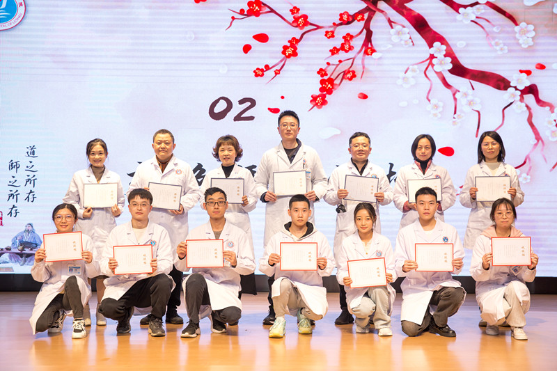 拜师过程中,学员向导师呈上“拜师帖”,行拜师礼,表达对导师的敬意,将谨遵师教、刻苦修炼,立志继承导师德技,探究医学事业之真谛。导师回赠“收徒帖”,望其刻苦勤学,谨记医学生誓言,为医学事业之发扬光大而努力奋斗。