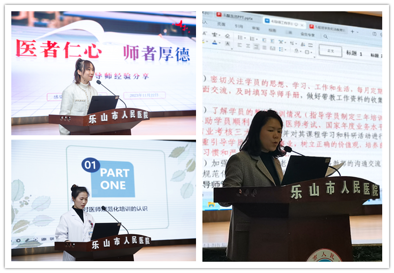 拜师会上,内科专业基地教学秘书李佳萌导师以“医者仁心 师者厚德”为主题总结了如何做好一名导师,分享了带教经验和感悟。内科专业基地学员2023级学员颜玉洁分享自己三年住培学习规划,希望在乐医优秀住培文化的熏陶下、在导师的严格指引下,刻苦培训,一步一个脚印如期完成培训任务,成长为一名合格的临床医师。科教部职员孙雪莲介绍了医师规范化培训导师管理要求、导师手册填写的注意事项。(供稿:乐山市人民医院)