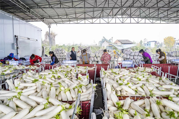 近年来,四川省乐山市沙湾区嘉农镇依托区位和土壤优势,在王场村、苏店村、魏坝村引进种植大户,通过“企业+合作社+集体经济+农户”等模式,种植秋宝、盛世冬美等白萝卜品种10余个,同时还吸纳50余名村民就近务工,有效带动就业增收。“目前,全镇采用机械化种植、无人机喷洒等高效率工作模式,一年可种两季萝卜,亩产6000公斤。”嘉农镇党委委员、组织委员匡伟说道。