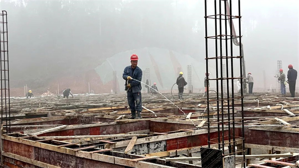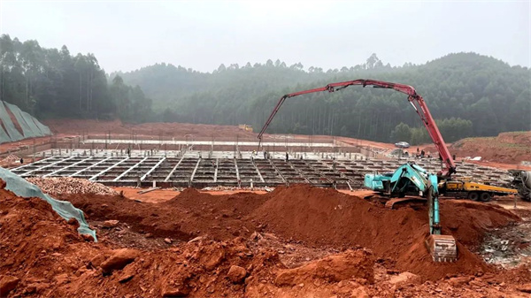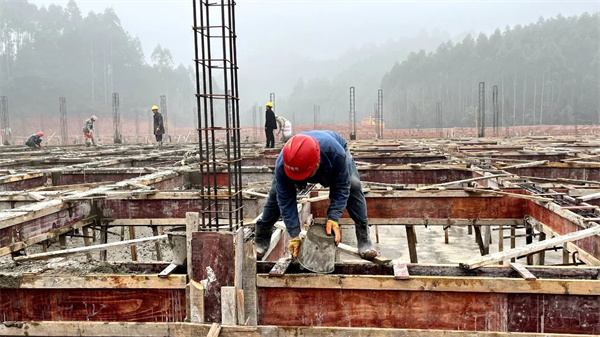 近日,在茅桥镇前进村的李冬梅生猪养殖场项目现场看到,有30多名工人正在进行抹面和浇筑混凝土施工,现场一片热火朝天的建设景象。据了解,该项目于今年9月开工建设,总投资700万元,占地42亩,存栏3600头,项目竣工后将带动茅桥镇生猪养殖产业发展。“项目预计在12月底主体完工,建成投用后年出产约7200头,年产值在2000万左右。” 乐山市冬宸农牧科技有限公司董事长李冬梅说。