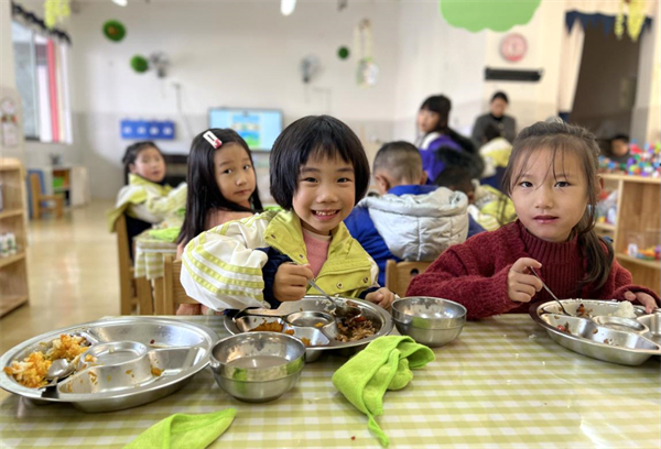 8月底,杨慧丽带着女儿来到了马边。从江南水乡,到山水彝乡,杨慧丽和女儿感到新鲜的同时,也有些不适应。“因为学生的基础、性格上的差异,教学中还是不大适应,最让我揪心的是我女儿,她每天早上在幼儿园哭着不肯进去。”于是,每天早上,她都要花上半个小时给女儿做充分的思想工作,才能把女儿送进教室。好在,三个多月过去了,在老师和同学的关心下,杨慧丽的女儿也逐渐适应了马边的生活,“我已经喜欢上马边了,我还交到了6个彝族的好朋友,真是太棒了。”在马边实验幼儿园的教室里,她女儿郭扬宇正和班里的小朋友一起愉快地吃着午餐。
