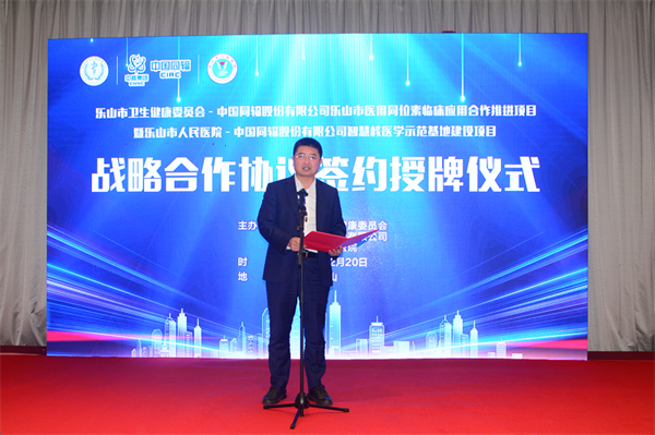 签约授牌仪式上,席代金部长首先向出席会议的中国同辐股份有限公司领导专家一行亲临乐山表示感谢,作为中核集团核技术应用的龙头企业,席代金期望通过此次签约授牌仪式,正式牵手医用同位素国内一流央企,互惠互助,强强联合,共同打造乐山医用同位素临床应用合作的新高地,更好地造福广大人民群众。张军旗书记在致辞中表示,四川作为我国核产业大省,拥有完整的核医疗产业链,省委、省政府专门出台政策支持乐山大力发展同位素生产及应用、辐照加工、核医学、先进核能、核能高端装备等产业。“乐山具有得天独厚的资源和条件,接下来,我们将进一步推进央地合作,组建全省首个区域核医学专科联盟,提升乐山核医学诊疗资源总量,助力乐山核医疗专业人才培养和科室建设。”