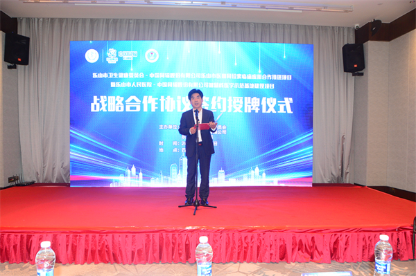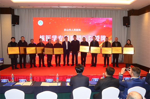 乐山市人民医院牵头成立了乐山市核医学专科联盟,是目前全国首个区域核医学联盟,四川首个核医学联盟。签约仪式上,席代金部长和沙万强副市长为乐山市人民医院核医学专科联盟医院进行了集中授牌。乐山市人民医院曾国军院长代表乐山市人民医院和中国同辐股份有限公司签订了《乐山市人民医院、中国同辐股份有限公司智慧核医学示范基地建设项目战略合作协议》,并授予乐山市人民医院“智慧核医学合作基地”。