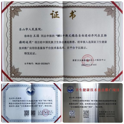 四川新闻网消息 近日,乐山市人民医院放射医学科王滔副主任医师团队申报的“MRI平衡式稳态自由进动序列在直肠癌的运用”入选国家卫生健康技术推广应用信息服务平台技术备选库及中国民族卫生协会卫生健康技术重点推广项目。该项目为直肠癌壁外血管侵犯(Extramural vascular invasion, EMVI)以及淋巴结良恶性判断,提供了一种全新的、直观的、简便并且较准确的方法,经四川省医学科技教育中心(川医科教评字〔2023〕004号)的科学技术成果评价,达到国内先进水平。