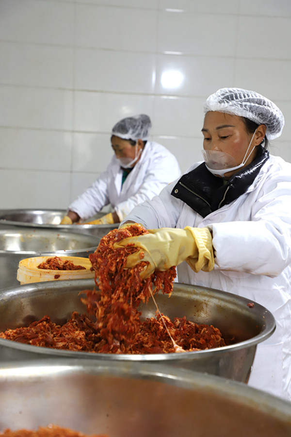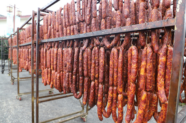 四川新闻网消息 这几天,正值各类腊制品热卖季。峨边彝族自治县新场乡星星村星耀食品厂也迎来一年里的又一次旺季。走进生产车间,6名务工人员正忙着称重、和料、灌肠等工作,陈秋兰则像往常一样,细心把控着每一道制作工序。