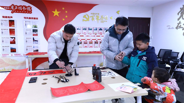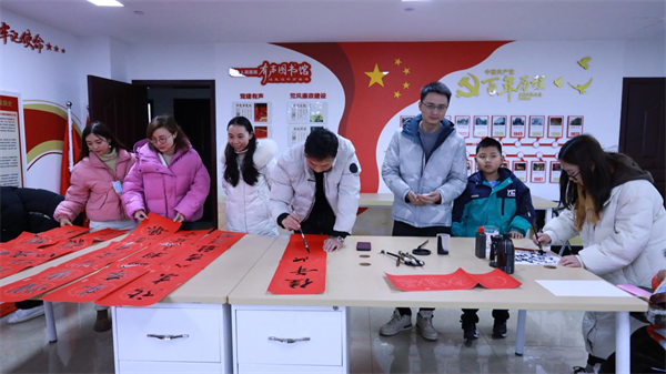 职工和家属们红幅铺展,挥毫泼墨;大家跃跃欲试,积极参与。现场气氛热烈祥和,喜气溢满脸庞,淡淡的墨香充盈着喜庆的年味。
