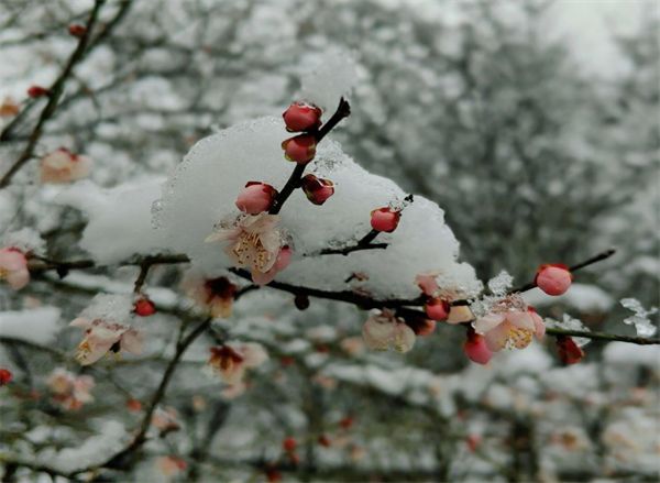 寒假不约而至,很多家长朋友在愁着往何处游玩的时候,“世外梅林”的梅花竞相开放,刚好雪花也飘落梅林,成为广大游客心生向往的好去处。元月25日的梅林,天空依然飘着零星的雪花,地面和梅枝上的积雪开始结冰,雪花拥抱的梅花成为晶莹剔透的冰梅,树枝也被冻得更加坚固。这时候,很多家庭选择带着孩子们来到梅林,一同欣赏美丽的雪景和傲雪凌霜的梅花,热热闹闹的景象为沉寂的“世外梅林”增添了许多活力。