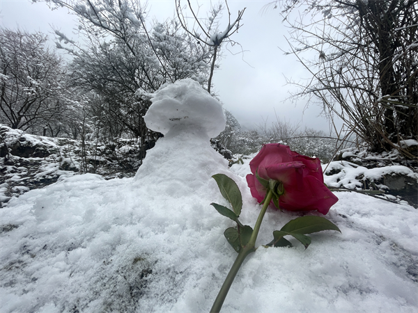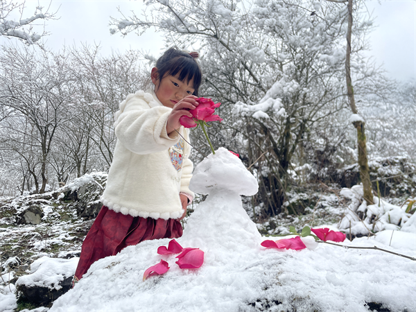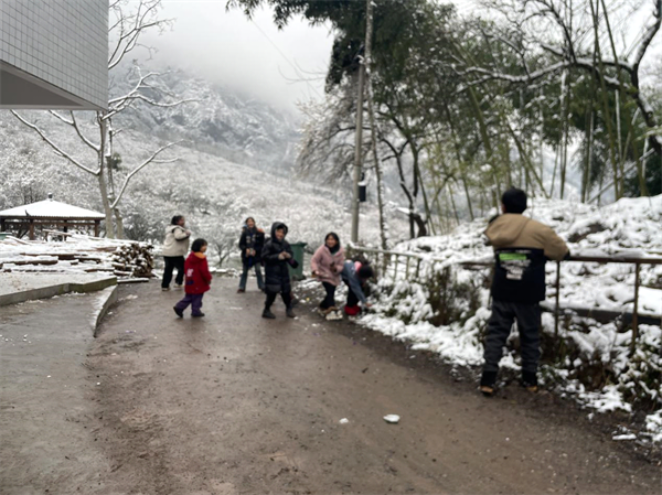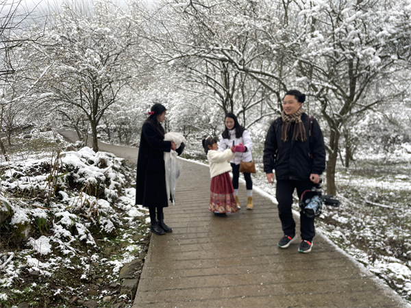 来自云南省丽江市的杨女士表示:“我爱人在这里上班,我是在他朋友圈看到的世外梅林大雪纷飞的美景,今天带着孩子到实地一看,果然是人间仙境,真的漂亮极了。”