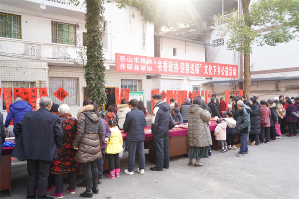 四川新闻网消息 2月1日,乐山市政协和井研县政协到井研县三江镇联合开展“书香政协 迎春送福”文化下乡公益活动。乐山市政协副主席易志隆,井研县政协党组书记、主席谷平,副主席刘国强等出席活动。