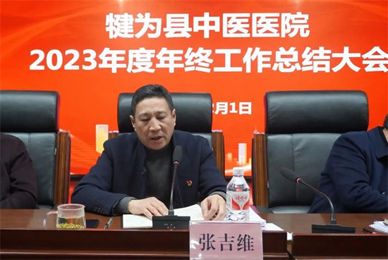 最后,医院党委书记张吉维强调,刚刚过去的2023年,医院党委班子团结带领全院干部职工顶住外部压力、克服内部困难,应对了一系列急事难事,办成了一系列好事实事,呈现来势好、大局稳、风气正、干劲足的良好局面,以实际行动交出一份振奋人心的“犍中医答卷”。新的一年,全院干部职工要踔厉奋发、勇于前行、团结拼搏、开拓进取,以昂扬向上、奋发有为的精神状态和求真务实的工作作风,持续加强“基础设施、人才队伍、医疗质量、专科建设、服务保障”等各项重点工作任务,推进重点项目、深化学科建设、强化中医特色、科研教学、提升管理效率等,加强以全面从严治党新成效引领推动医院高质量发展,更好地为人民群众健康保驾护航。